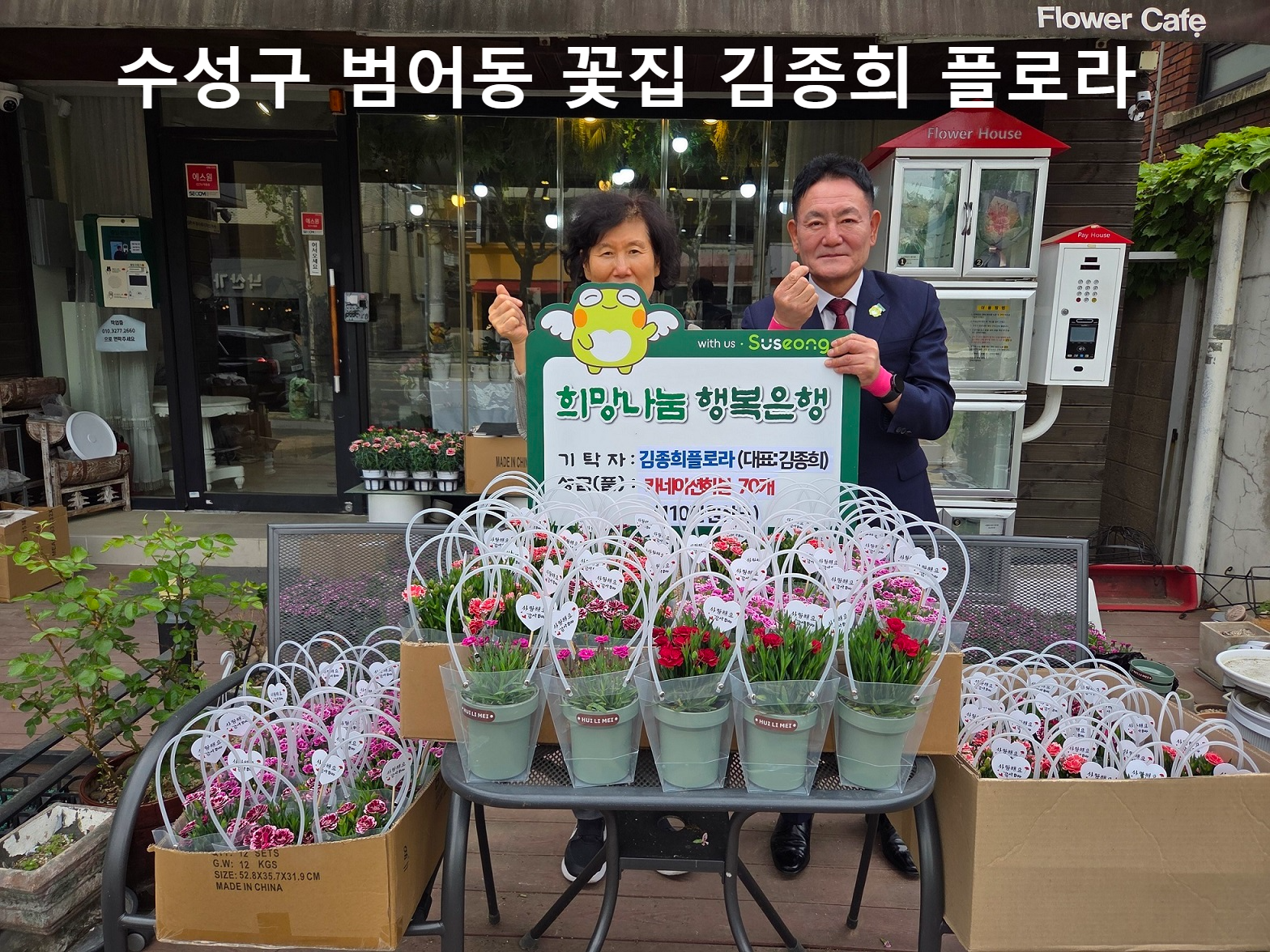 정병준 범어3동장은 “정성껏 준비해주신 수성구 범어동 꽃집 김종희플로라 카네이션 화분은 어르신들께 큰 위로가 될 것”이라며 “소중한 마음이 온전히 전해질 수 있도록 잘 전달하겠다”고 말했다.