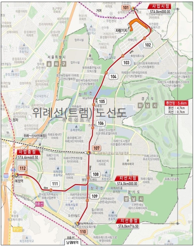 다음으로 위례선 트램 노선도에 대해 설명드리겠습니다.