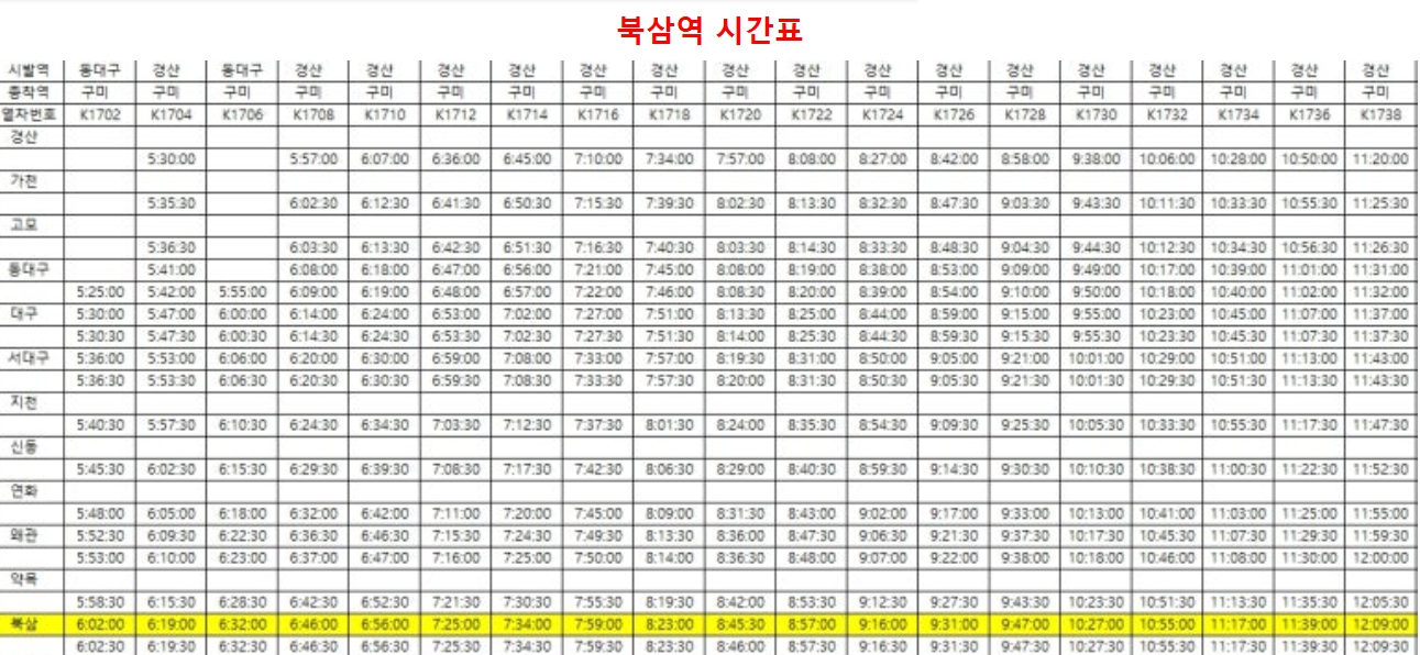 한편, 2024년 말 개통된 대경선 시간표에 따라 누적 된 이용객 500만 명을 기록하며 대구·경북을 연결하는 광역 교통망으로 운영되고 있다. 북삼역 개통으로 칠곡군도 대경선 이용 범위에 포함되며 광역 철도 이용 편익이 확대될 것으로 보인다.